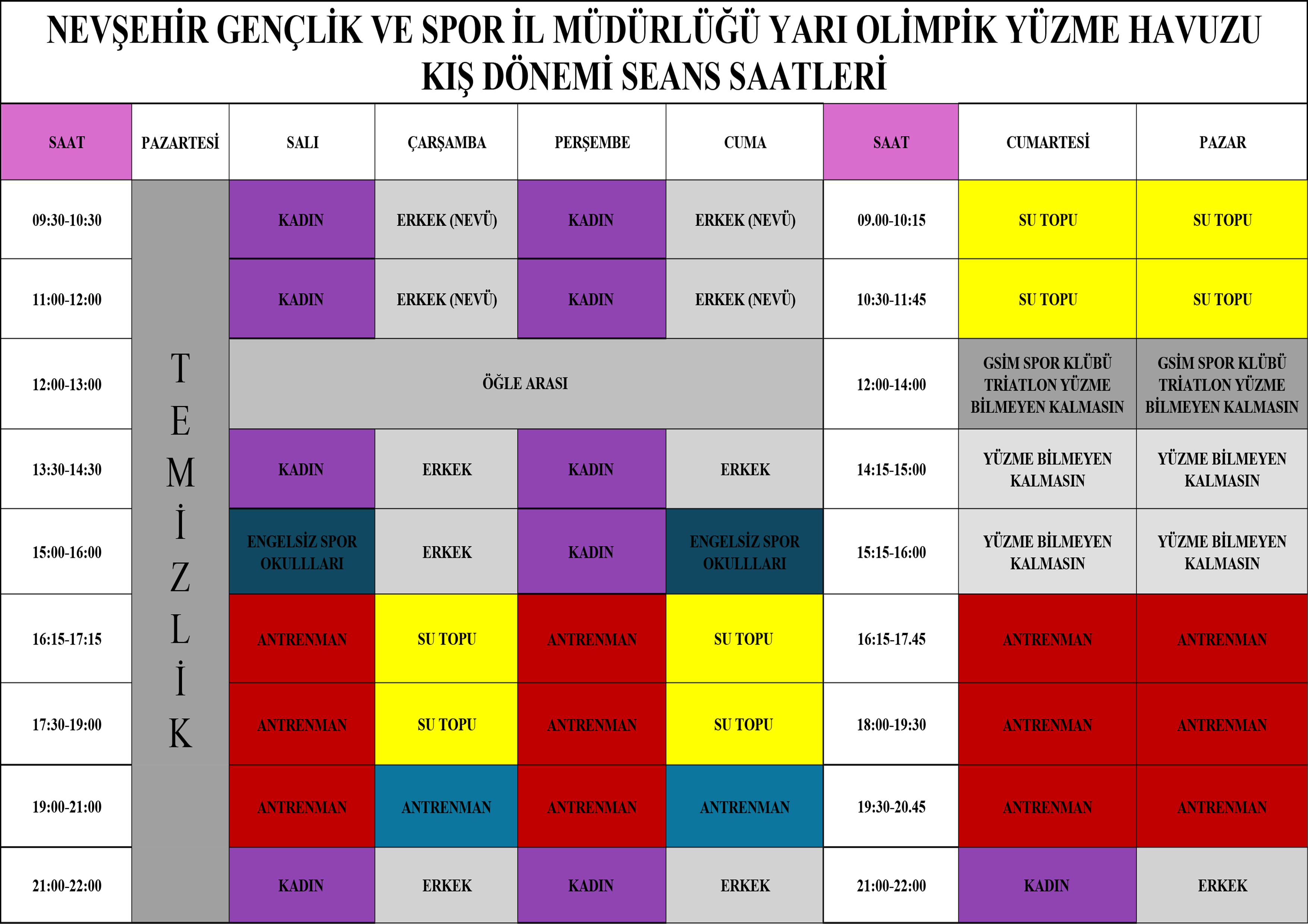 2026 KIŞ DÖNEMİ HAVUZ PROGRAMI