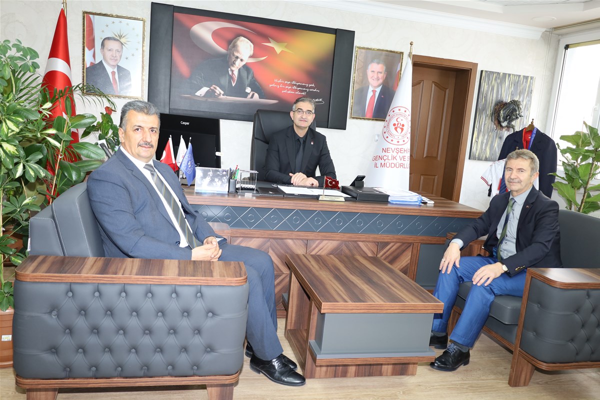 Nevşehir Sanayi ve Teknoloji İl Müdürü Yusuf Şahin ile İl Yazı İşleri Müdürü Adem Yüksel, Nevşehir Gençlik ve Spor İl Müdürü Mustafa Hakan Keskin’i ziyaret etti.