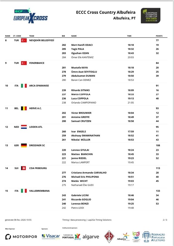 Atletizm sporcularımız, Avrupa atletizm sahnesinde tarihi ve ses getiren bir başarıya imza attı. Kulüp, Avrupa Kros Şampiyonası (ECCC Cross Country – Albufeira 2026) kapsamında ilk kez katıldığı Avrupa Şampiyonası’nda, kıtanın köklü ve deneyimli kulüpleriyle mücadele ederek önemli bir derece elde etti.