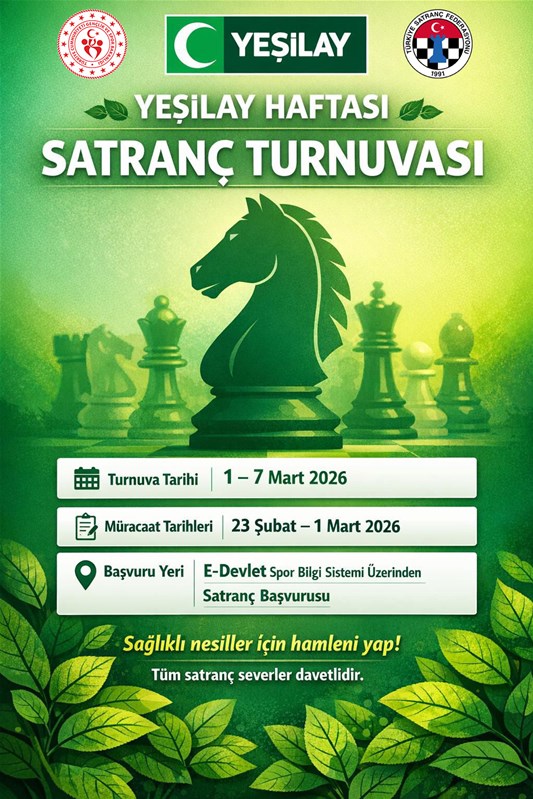 Gençlik ve Spor Bakanlığı ile Türkiye Yeşilay Cemiyeti tarafından, bağımlılıklarla mücadelede toplumsal farkındalığı artırmak ve 2026 yılının “Bağımsızlık Yılı” vizyonu doğrultusunda sağlıklı yaşam kültürünü güçlendirmek amacıyla Satranç Turnuvası düzenleniyor.